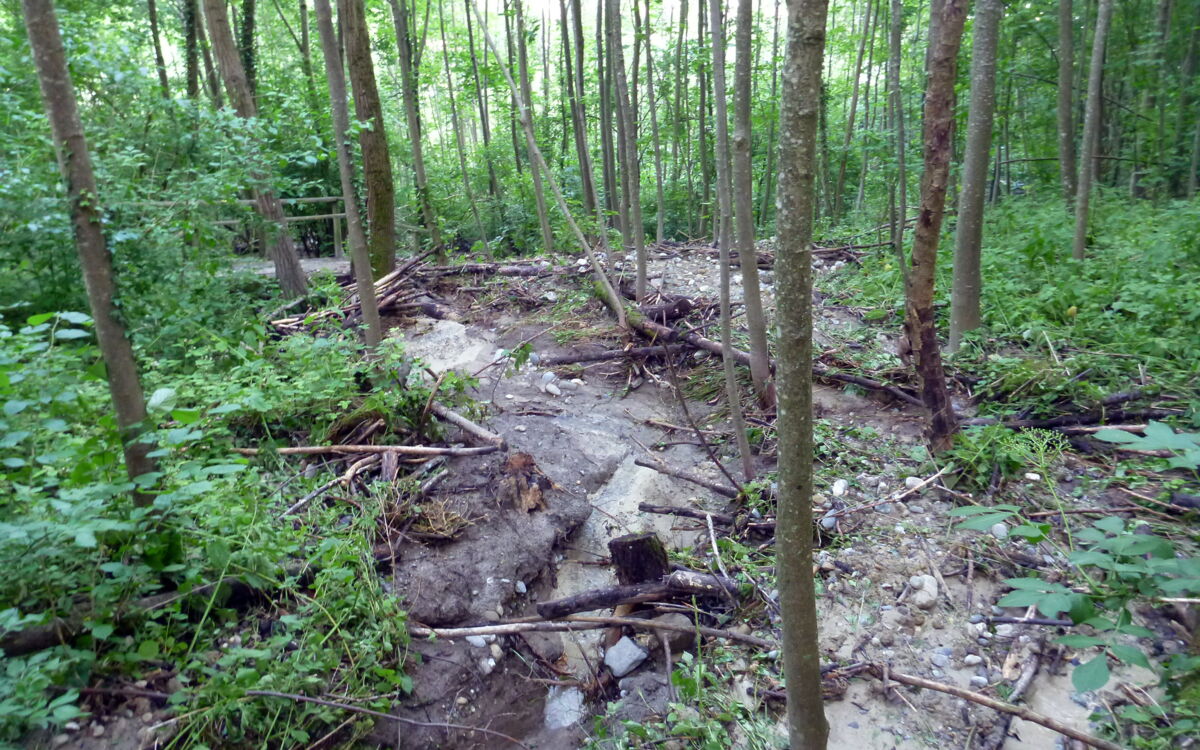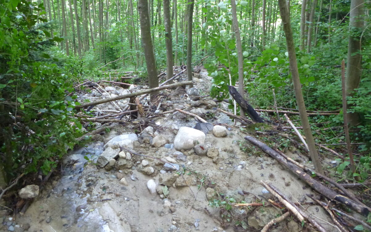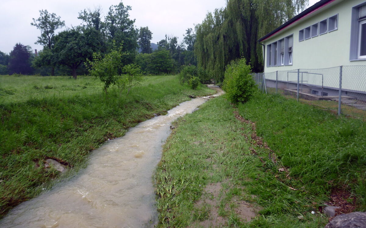 Several communities in Thurgau were hit by heavy rainfall. We used field surveys to forensically analyse the water in the watercourse, in the surrounding countryside and in the affected residential areas.